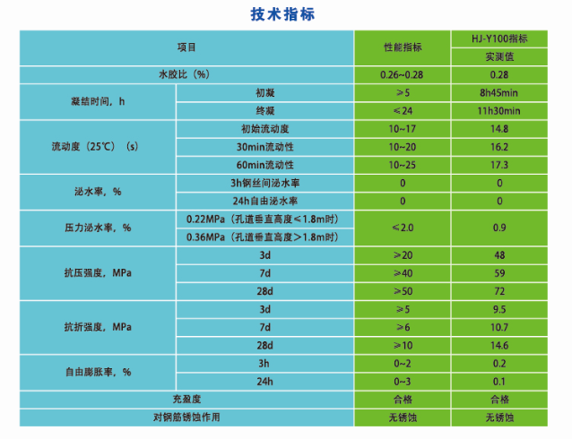 ●產品只有高充盈性,可一次性壓壓漿施工,管道內漿體密實無空隙。無氯鹽、亞硝酸鹽、低堿、無銹蝕作用,無毒,對健康和環境均安全。